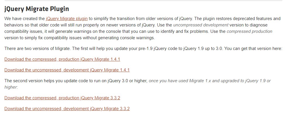 이러한 호환성 문제를 해결하기 위해서 사용하는 플러그인이 바로 jQuery Migrate입니다.